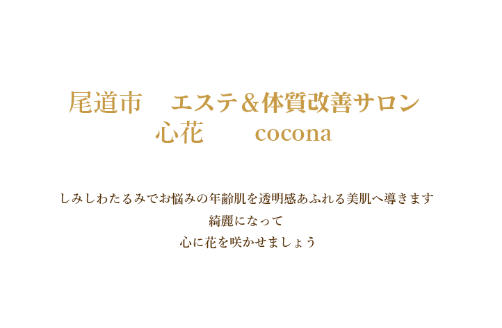 心花coconaでは長年エステティシャンとして携わってきたセラピストが日々技術と心を磨きお客様に満足いただけるSalon作りを目指しています。お客様にゆったりとリラックスしてエステを受けていただきたいので完全予約制のマンツーマンでさせていただいています。 とにかく結果の出るエステにこだわっています。心も一緒にメンテナンス。お話をしっかり聞き、癒しを提供できるよう、技術磨きと共に心磨きも大事にしています。